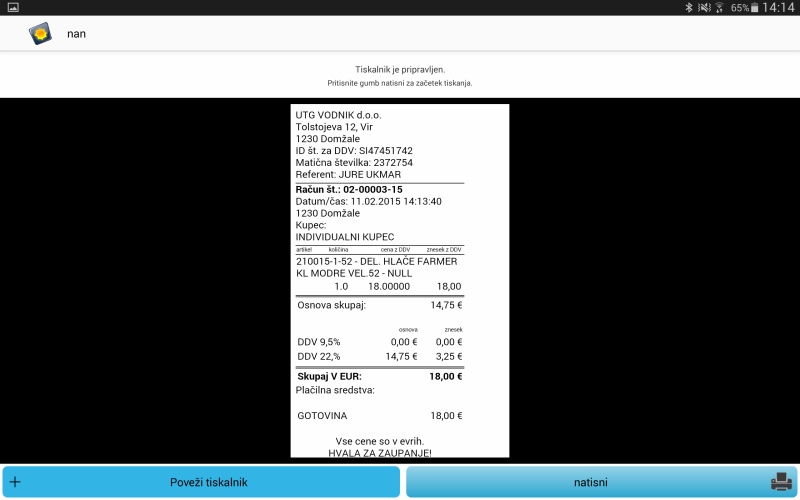 Izdelava POS prejemka na Androidu